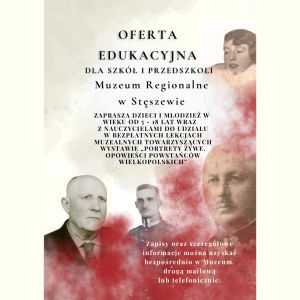 Serdecznie zapraszamy uczniów wraz z nauczycielami do udziału w bezpłatnych lekcjach muzealnych towarzyszących wystawie „Portrety żywe. Opowieści Powstańców Wielkopolskich”.